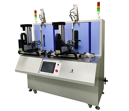 電子門鎖壽命耐久試驗(yàn)機(jī)完全滿足GA 374-2019(電子防盜鎖),GA 701-2007 (指紋防盜鎖通用技術(shù)條件)、GB 21556.2-2025《鎖具安全技術(shù)要求 第2部分:防盜鎖》,適用于各類指紋鎖、電子密碼鎖等智能門鎖,能對(duì)各種智能電子門鎖進(jìn)行多功能測(cè)試。采用PLC+觸摸屏控制,自動(dòng)化程度高,樣品門鎖快速安裝,自動(dòng)測(cè)試,測(cè)試完成后自動(dòng)報(bào)警停機(jī),是各個(gè)質(zhì)檢部門和生產(chǎn)廠家的必用試驗(yàn)設(shè)備。