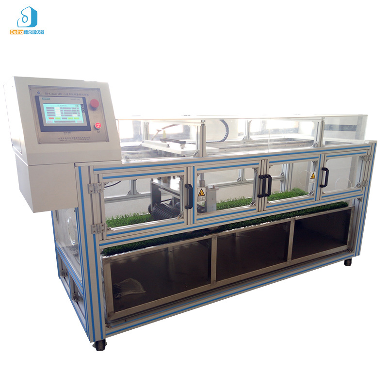 DELTA儀器公司根據FIFA和CEN的標準描述,檢測人造草坪的耐磨度, 德爾塔儀器研發(fā)了草皮磨損測試儀來進行模擬機械磨損測試.這種草皮磨損測試儀能夠進行兩種模擬測試:隨機加力磨損測試和橫向運動磨損測試,這些相關標準指定的磨損測試方式可以避免產生測試實驗的規(guī)律性。通過Lisport20耐磨損測試設備上的釘輥在人造草坪樣品上來回碾壓,模擬正常使用時,運動員穿著帶釘運動鞋在草坪上運動,達到一定的時間周期后,檢驗、評價草坪的磨損情況。耐磨性能良好的人造草坪更耐用,使用壽命更長久。本試驗機結合國外先進同類設備優(yōu)點并自主創(chuàng)新,采用橫縱兩維方向上的兩個獨立運動系統更合理地模擬人造草坪實際使用時的磨損情況,并且結構緊湊,噪音小,操作簡單,便捷美觀。