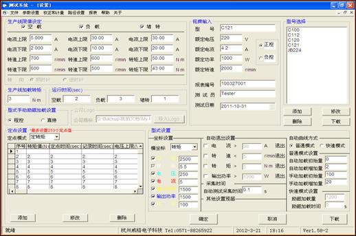 電動自行車專用測功機及其測試系統(tǒng)由磁滯制動器、扭矩傳感器,平臺、測功機控制器、直流電參數(shù)測試儀、立式系統(tǒng)控制柜、軟件和夾具、等組成,它可以任意改變被測電機的負載,直接測量出電機空載、負載及堵轉狀態(tài)下電機的輸出轉矩、轉速、輸出功率。軟件可實現(xiàn)手動、自動二種測試方式,完成空載、負載測試、堵轉測試,具有繪制特性曲線、存儲、打印等功能。