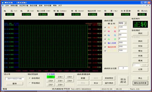 5、系統(tǒng)配有全套簡體中文軟件,能制作電機型式試驗報告表格和曲線圖。