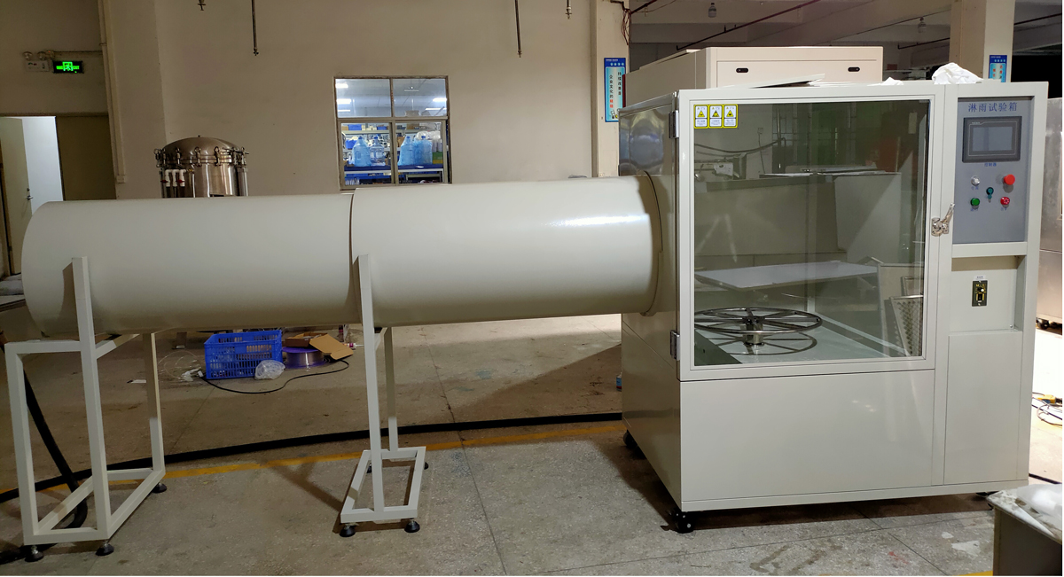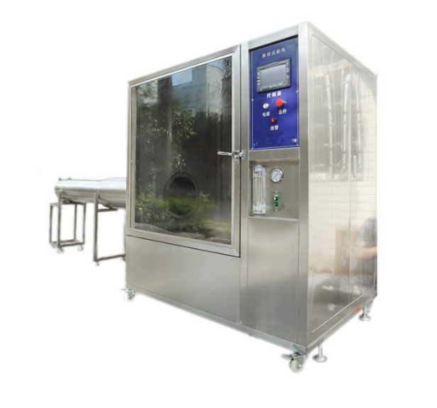 本設(shè)備采用橫向沖水、全密封式設(shè)計(jì)結(jié)構(gòu),適用于研發(fā)型、寫字樓等場(chǎng)地安裝,幫助客戶解決了敞開(kāi)式淋雨過(guò)程中試驗(yàn)用水噴淋和收集不便帶來(lái)的麻煩。設(shè)備底部設(shè)置一水箱在通過(guò)右側(cè)控制箱內(nèi)部的不銹鋼水泵抽水并加壓后再送到側(cè)面噴水管裝置的噴頭處,噴嘴恒向噴水到轉(zhuǎn)盤上面的樣品上,再散落到水箱內(nèi)部,從而形成水循環(huán)系統(tǒng)。水泵出口設(shè)計(jì)流量計(jì)、壓力表、電子閥等控制元件。