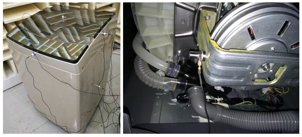 洗衣機(jī)振動性能測試系統(tǒng)依據(jù)GB/T4288-2018《家用和類似用途電動洗衣機(jī)》標(biāo)準(zhǔn)中第6.16章節(jié)及附錄J規(guī)定的方法進(jìn)行試驗(yàn)研制而成。