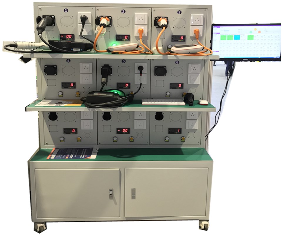 1.用于單相交流充電槍樁老化測試,確保產品出貨符合要求。適用于符合GB/T 18487.1-2015、IEC 62196-2-2016、SAE J1772-2017、SAE J1772-2017 電動汽車交流充電槍/樁產品老化測試;