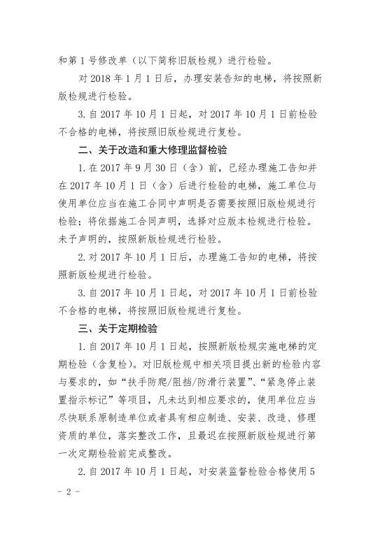 關(guān)于實施《電梯監(jiān)督檢驗和定期檢驗規(guī)則》等5個安全技術(shù)規(guī)范第2號修改單的通知