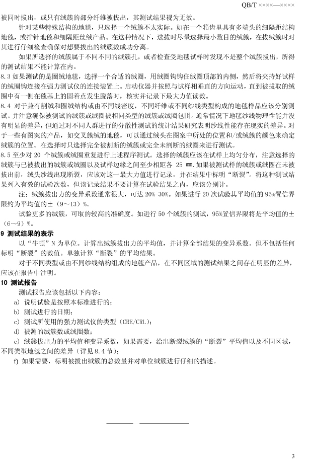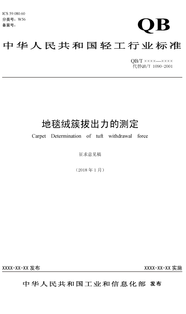 在現(xiàn)行的人造草絲標(biāo)準(zhǔn)GB/T20394-2013中單簇草絲拔出力的測試方法是引用“QB/T1090-2001”地毯的測試方法,近日DELTA德爾塔儀器小編從“國家地毯質(zhì)量監(jiān)督檢驗中心”了解到,國家地毯中心正在組織相關(guān)行業(yè)專家老師對該標(biāo)準(zhǔn)征求意見——地毯拔出力征求意見稿,詳情如下所示。
