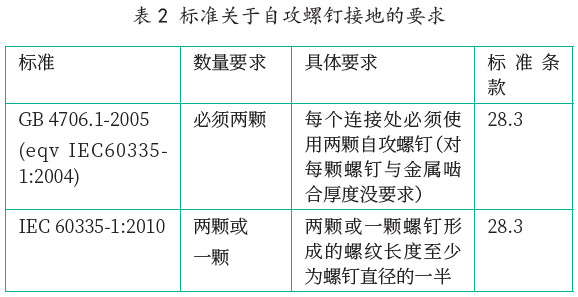 0I 類和I 類設(shè)備防電擊措施是通過基本絕緣和附加安全防護措施,也就是說,當將基本絕緣失效后,導(dǎo)電部件通過連接到產(chǎn)品的保護接地上,起到防電擊保護作用,因此,采用保護接地方式對于0I 類和I 類設(shè)備的安全是十分重要。作為提供接地性的部件和螺釘,不僅要符合國標GB 4706(IEC 60335) 第27 章( 接地措施) 的要求,且要符合GB 4706(IEC 60335) 第28 章( 螺釘和連接) 的要求。
