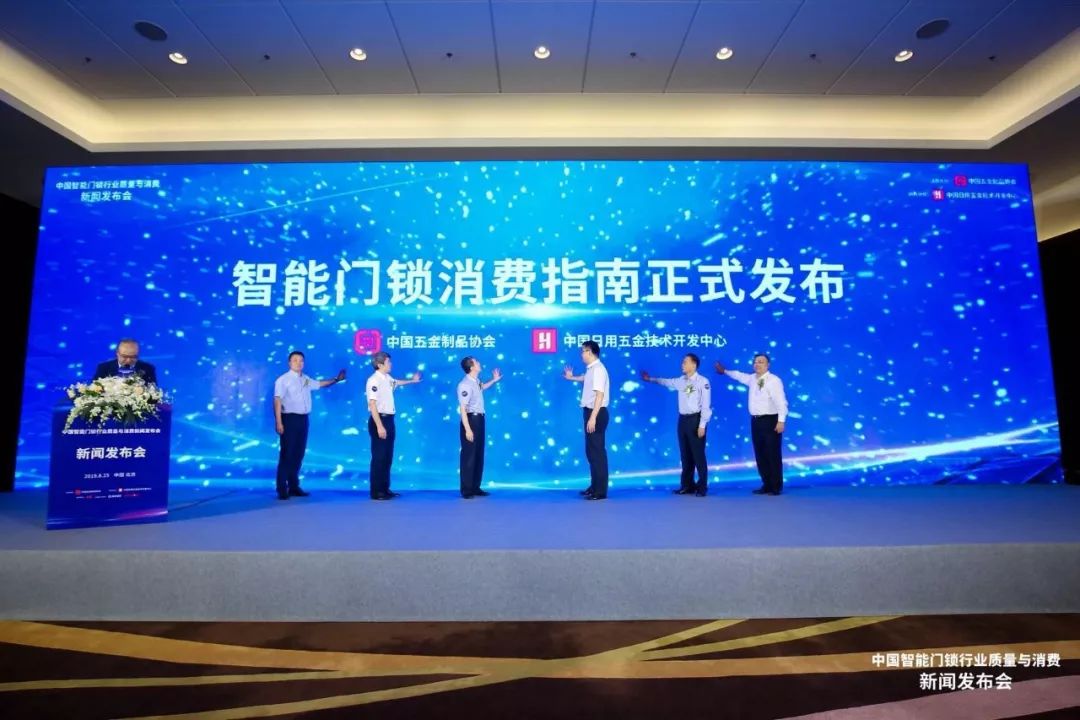 為進(jìn)一步推動(dòng)智能門鎖行業(yè)的健康、可持續(xù)、高質(zhì)量發(fā)展,8月25日,由中國(guó)五金制品協(xié)會(huì)主辦,中國(guó)日用五金技術(shù)開(kāi)發(fā)中心協(xié)辦的“中國(guó)智能門鎖行業(yè)質(zhì)量與消費(fèi)”新聞發(fā)布會(huì)在北京國(guó)家會(huì)議中心召開(kāi)。中國(guó)輕工業(yè)聯(lián)合會(huì)秘書長(zhǎng)杜同和、國(guó)家市場(chǎng)監(jiān)督管理總局質(zhì)量發(fā)展局質(zhì)量處處長(zhǎng)高勇、中國(guó)五金制品協(xié)會(huì)理事長(zhǎng)石僧蘭、中國(guó)五金制品協(xié)會(huì)執(zhí)行理事長(zhǎng)張東立、中國(guó)日用五金技術(shù)開(kāi)發(fā)中心主任畢智濤、清華紫光國(guó)芯微電子股份有限公司總裁馬道杰等有關(guān)領(lǐng)導(dǎo)出席發(fā)布會(huì)。京東、天貓、蘇寧、紅星美凱龍、居然之家等渠道代表,行業(yè)50余家骨干企業(yè)主要負(fù)責(zé)人以及近百家新聞媒體參加發(fā)布會(huì)。