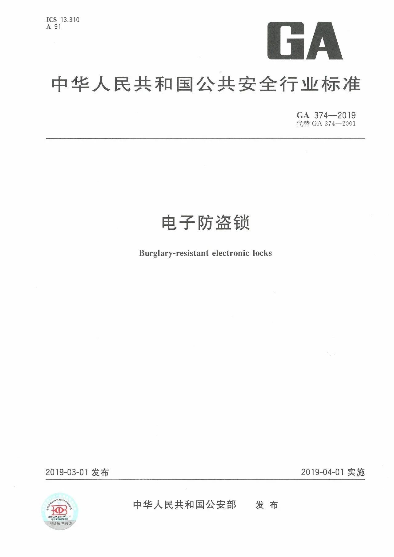 在國(guó)標(biāo)修訂完畢之前,GA 374-2019《電子防盜鎖》是最值得關(guān)注的。該標(biāo)準(zhǔn)是目前智能鎖行業(yè)涉及范圍最廣的行業(yè)標(biāo)準(zhǔn)。若產(chǎn)品標(biāo)稱中包含“防盜”,或標(biāo)示與《電子防盜鎖》中一致的安全級(jí)別,或標(biāo)示執(zhí)行標(biāo)準(zhǔn)《電子防盜鎖》,則在監(jiān)管中可依據(jù)該標(biāo)準(zhǔn)開(kāi)展抽檢執(zhí)法。