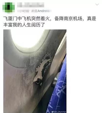 事發(fā)后有多位網(wǎng)友發(fā)文稱,東航MU2809航班起飛后客艙出現(xiàn)明火。記者在微博上網(wǎng)友爆料的圖片上看到,座位一側(cè)被熏黑。據(jù)悉,事發(fā)時(shí),空姐正在分發(fā)餐點(diǎn),見此情形,立即用礦泉水將火撲滅。整個(gè)過程中,并無人員傷亡。