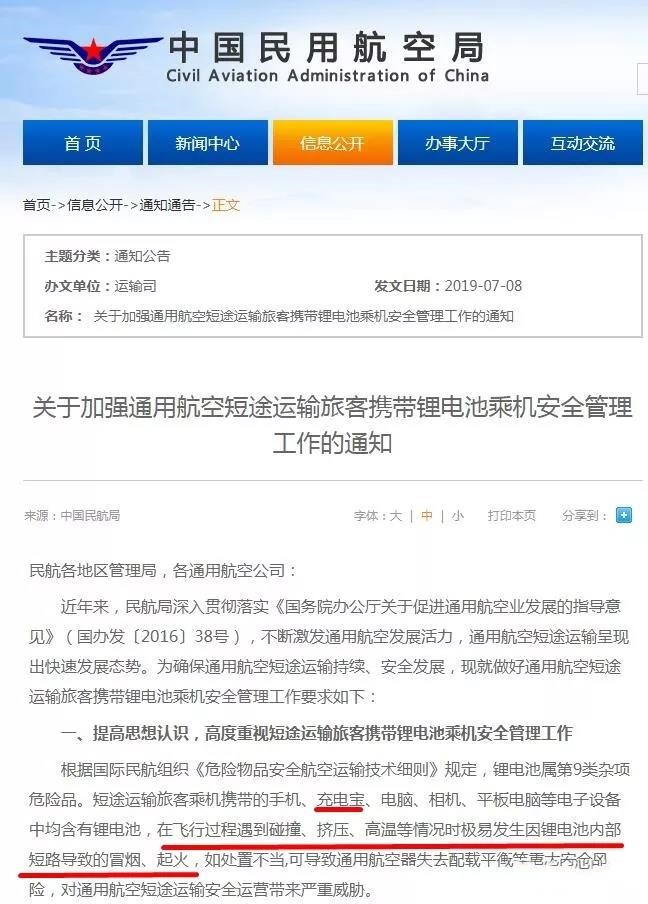 在中國(guó)民用航空局今年7月發(fā)布的《關(guān)于加強(qiáng)通用航空短途運(yùn)輸旅客攜帶鋰電池乘機(jī)安全管理工作的通知》中提到,短途運(yùn)輸旅客乘機(jī)攜帶的手機(jī)、充電寶、電腦、相機(jī)、平板電腦等電子設(shè)備中均含有鋰電池,在飛行過程遇到碰撞、擠壓、高溫等情況時(shí)極易發(fā)生因鋰電池內(nèi)部短路導(dǎo)致的冒煙、起火。