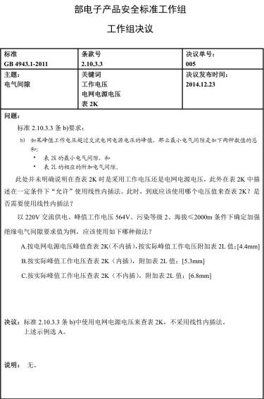■第005號(hào)決議:GB 4943.1-2011第2.10.3.3條“電氣間隙”