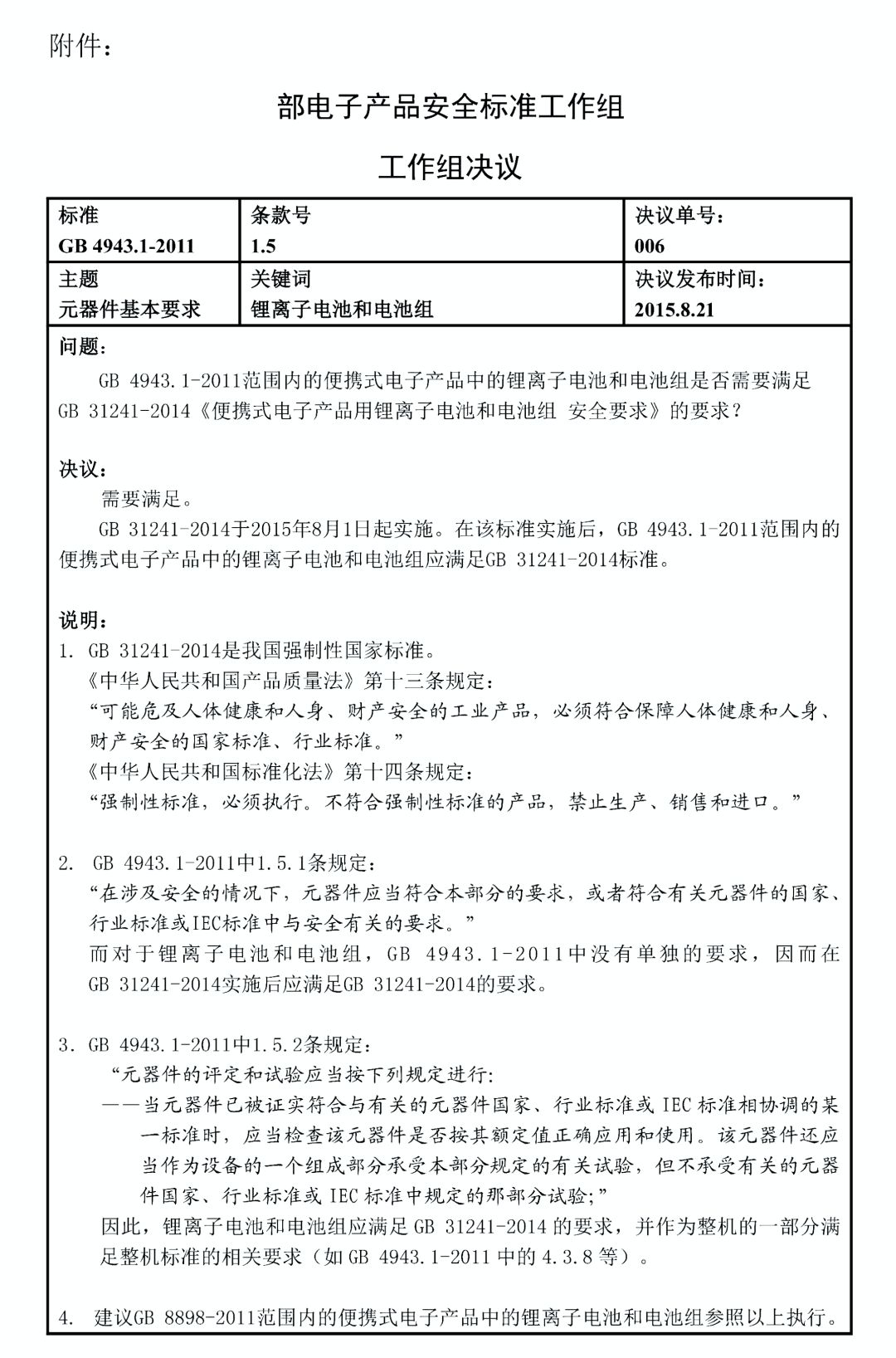 ■第006號(hào)決議:GB 4943.1-2011第1.5條“元器件基本要求”