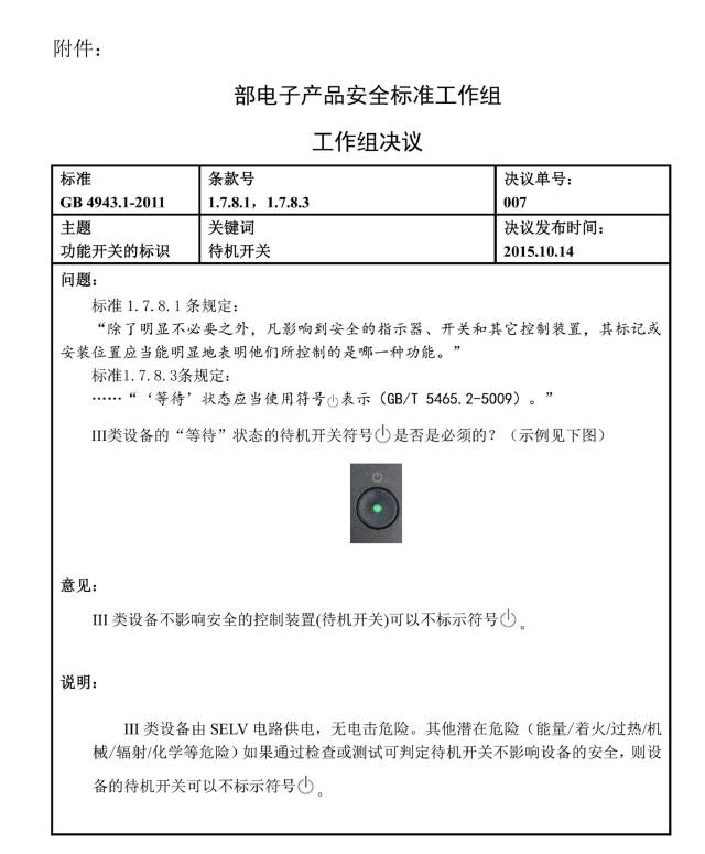 ■第007號(hào)決議:GB 4943.1-2011第1.7.8.1,1.7.8.3條“功能開(kāi)關(guān)的標(biāo)識(shí)”
