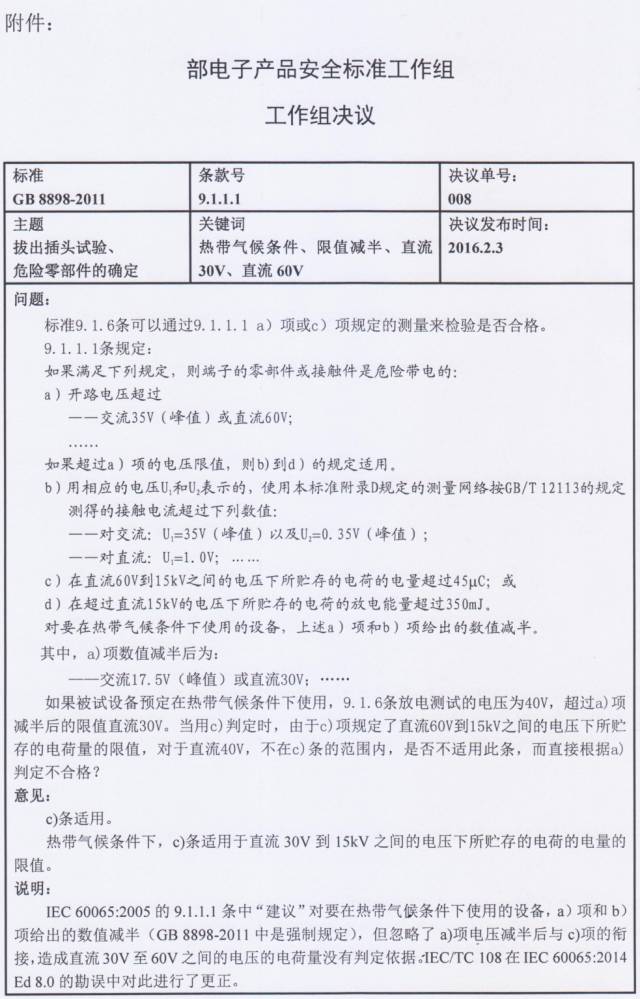 ■第008號(hào)決議:GB 8898-2011第9.1.1.1條“拔出插頭試驗(yàn)、危險(xiǎn)零部件的確定”