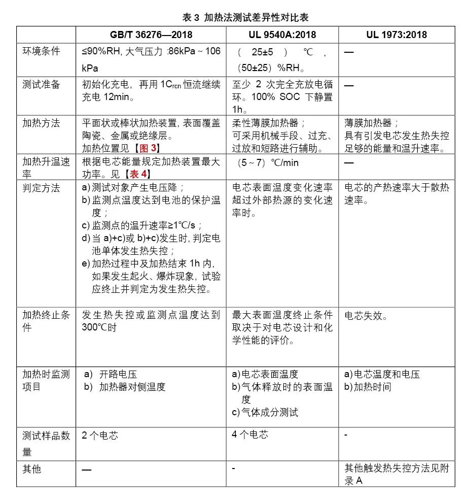 GB/T 36276—2018和 UL 9540A:2018觸發(fā)電芯熱失控的方法均為加熱法;