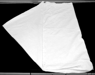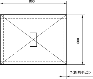 將床單A面左側(cè)邊向A面下側(cè)邊折疊,然后將A面下側(cè)邊向A面右側(cè)折疊(圖C6所示),然后展開,以其中央折痕處作為第1塊污染布的中心位置,在污染布頂部進(jìn)行固定。