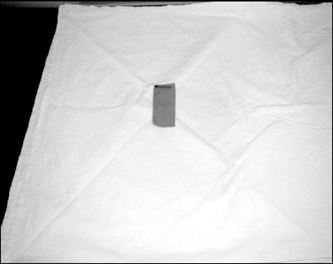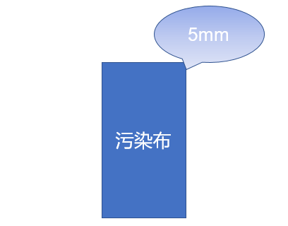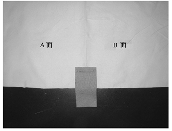 以床單的中央折痕作為第3塊污染布的中心位置,在污染布頂部進(jìn)行固定,確保污染布的上1/2在A、B面上。