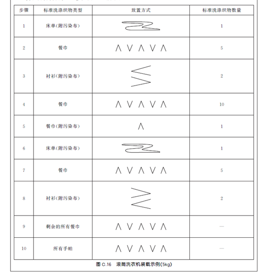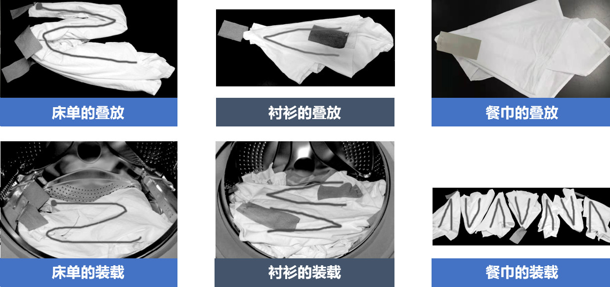 床單、襯衫、餐巾和手帕按照標(biāo)準(zhǔn)配置;最終試驗(yàn)負(fù)載質(zhì)量±10g;滿足新舊負(fù)載混合,1/3(4h~60h),1/3(61h~120h),1/3(120h~180h)。