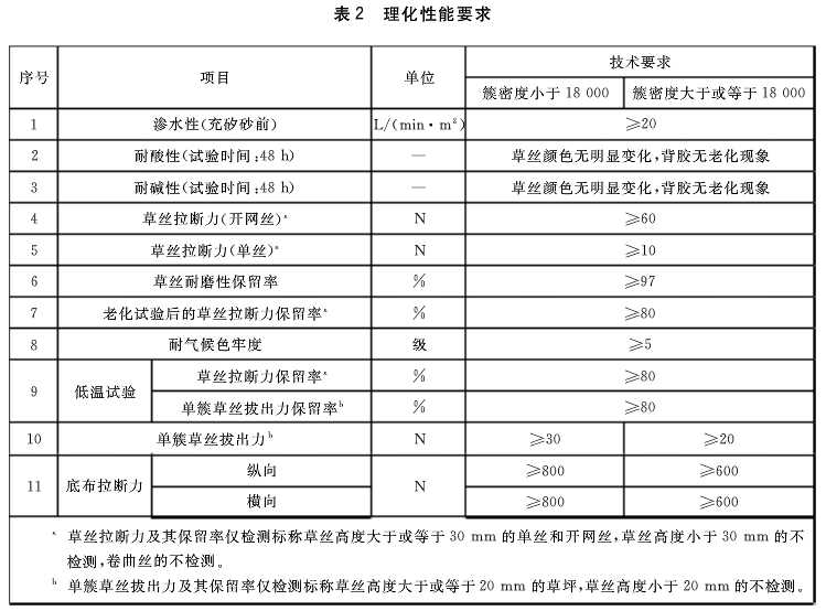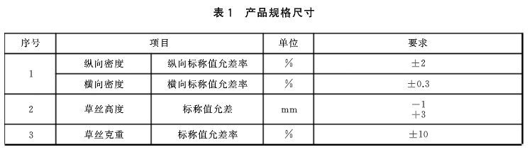 以下是國標中對人造草的產(chǎn)品規(guī)格尺寸、理化性能和安全性能的要求: