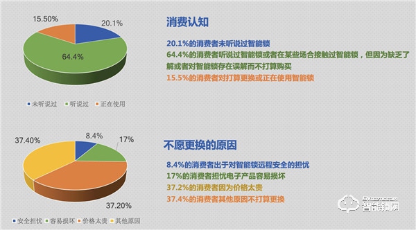 (2)用戶習(xí)慣還未真正養(yǎng)成。用戶習(xí)慣還未真正養(yǎng)成。一方面是大部分用戶習(xí)慣使用鑰匙,特別是中老年人群傳統(tǒng)觀念非常深,一方面指紋還沒有很好的解決兒童和老人的識別問題。老年人對于新鮮事物興趣缺乏,缺乏消費動機,讓人覺得沒必要花“冤枉錢”。2019年天貓智能門鎖白皮書,相關(guān)數(shù)據(jù)顯示,有將近65%的受訪者表示,聽說過智能門鎖,但不了解。