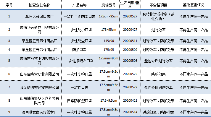 7月24日,濟南市市場監(jiān)督管理局官網公布2020年非醫(yī)用口罩產品質量市級監(jiān)督抽查不合格情況。2020年5月到6月,濟南市市場監(jiān)督管理局組織開展了非醫(yī)用口罩產品質量監(jiān)督專項抽查,發(fā)現8家9批次非醫(yī)用口罩產品質量監(jiān)督抽查不合格企業(yè)。