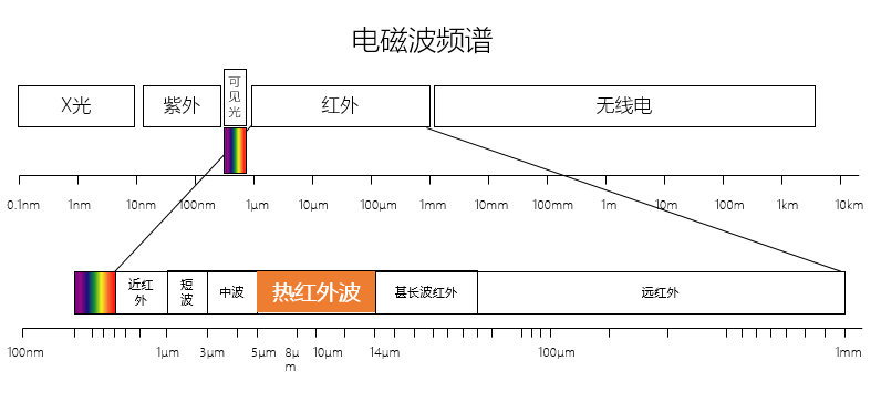 熱成像主要采集熱紅外波段(8μm-14μm)的光,來探測物體發(fā)出的熱輻射,把熱輻射轉(zhuǎn)化為灰度值,再利用各物體的灰度值差異來成像,從而發(fā)現(xiàn)和識別目標(biāo)。