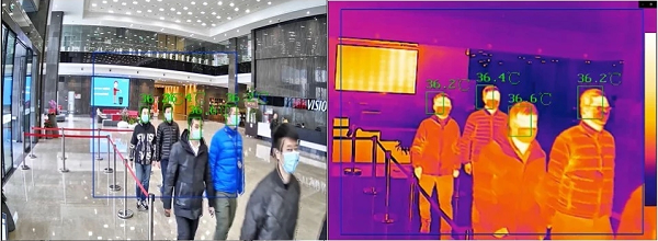 基于市場的大量需求,市面上涌現(xiàn)出各類測溫產(chǎn)品,其中熱成像測溫產(chǎn)品以其精確高效的技術(shù)特點(diǎn)及靈活的布控方式獲得了用戶廣泛認(rèn)可。熱成像測溫產(chǎn)品可以做到非接觸式批量測溫,且溫度可以精確到±0.5℃。熱成像測溫設(shè)備的布控方式可分為固定式布控方案以及靈活式布控方案,其中固定式布控方案:如人體測溫相機(jī),適用于樓宇社區(qū)、學(xué)校、工廠、企業(yè)、醫(yī)院等室內(nèi)主要出入口,相機(jī)發(fā)現(xiàn)異常可以發(fā)出聲光報警,相機(jī)具有低功耗,成像質(zhì)量優(yōu)異的優(yōu)點(diǎn);靈活布控方案:如手持人體測溫儀,適用于各小區(qū)出入口,使用靈活,單體設(shè)備,開箱即用,簡單便捷。