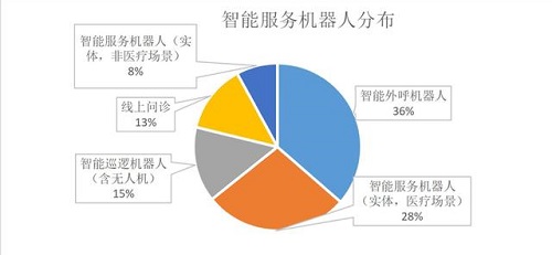 根據(jù)中國人工智能產(chǎn)業(yè)聯(lián)盟智能外呼機器人的首輪評測統(tǒng)計的參評產(chǎn)品截至 2月7日的呼叫情況,其中,54%的產(chǎn)品總呼叫量為百萬級,15%的產(chǎn)品總呼叫量達千萬級,38%的產(chǎn)品日呼叫量達到萬級,31%的產(chǎn)品日呼叫量達十萬級。智能外呼機器人提高了篩查效率,減輕了基層工作者壓力;另外,目前醫(yī)療服務場景的實體智能服務機器人的主要應用場景為清潔、消毒和配送,以替代人力完成重復性、機械性、簡單的工作為主。