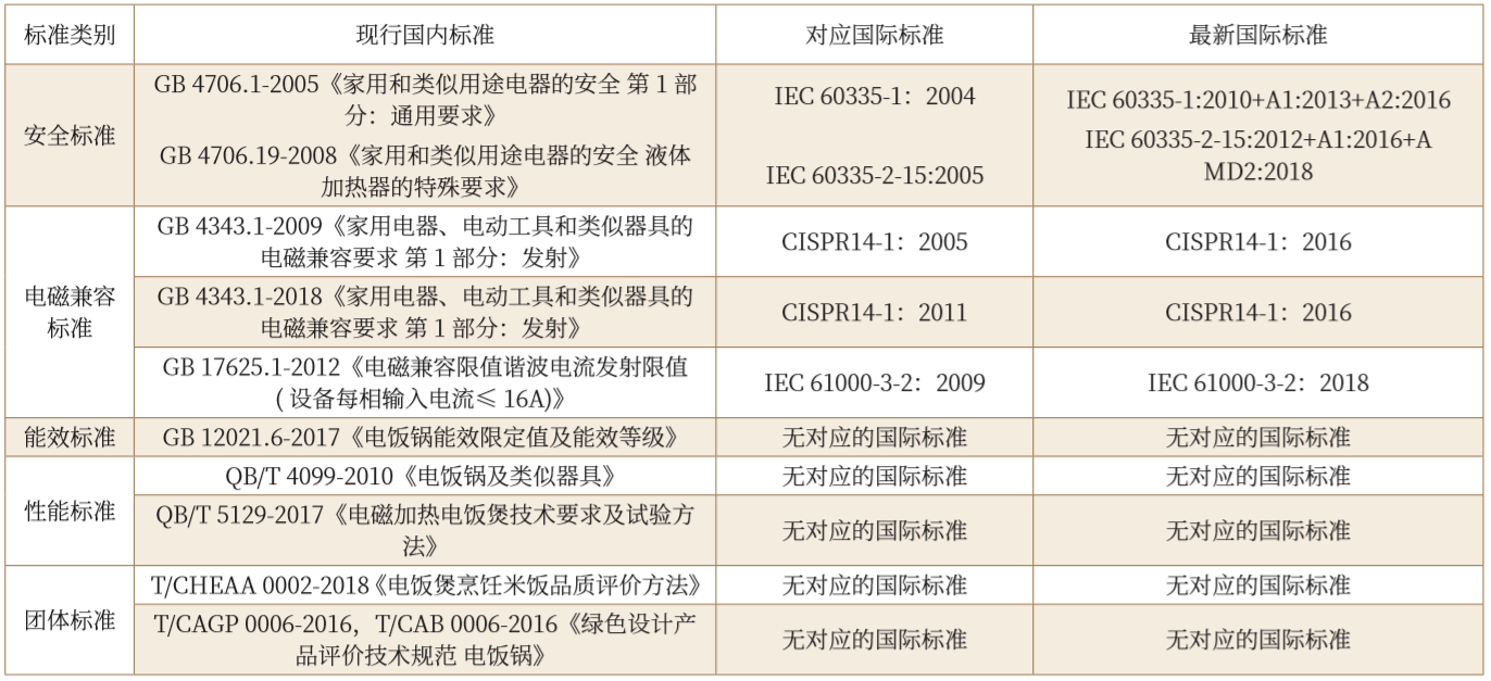 表 1 電飯煲產(chǎn)品現(xiàn)行國內(nèi)標(biāo)準(zhǔn)及國際標(biāo)準(zhǔn)