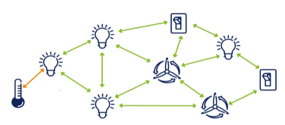 智能樓宇系統(tǒng)的拓撲將取決于傳感器和執(zhí)行器,如圖1所示。