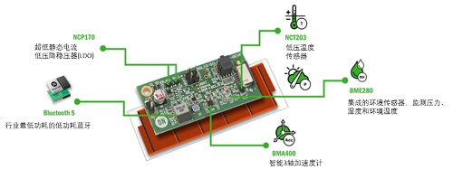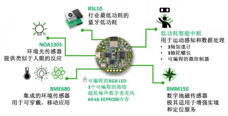 將多個傳感器集成至一個設備中,其價值將會實現(xiàn)大幅提升。看似普通的燈具卻可成為智能樓宇基礎設施的關鍵部分。傳感器的小尺寸和超低功耗特性,使小外形的PCB可輕松容納多個傳感器,以監(jiān)測占用、溫度、濕度、空氣質量等。使用超低功耗通信器件如RSL10 藍牙低功耗無線電,該多傳感器平臺可由單個紐扣電池供電運行數(shù)年(圖4)。