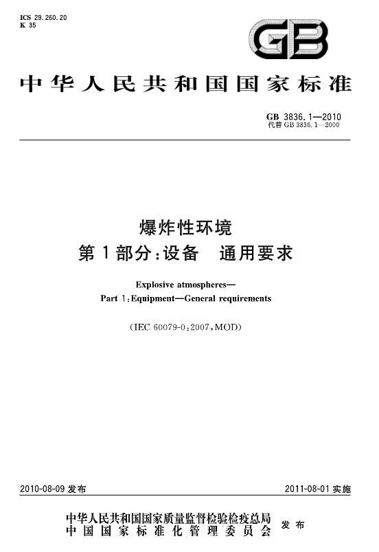 1、GB 3836.1-2010 爆炸性環(huán)境 第1部分:設(shè)備 通用要求;