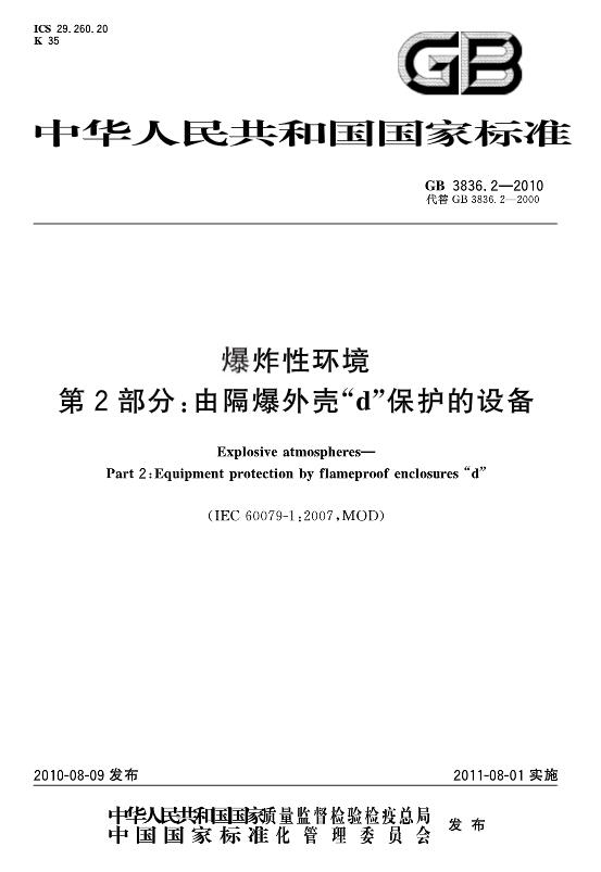 2、GB 3836.2-2010 爆炸性環(huán)境 第2部分:由隔爆外殼“d” 保護(hù)的設(shè)備。