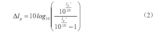 在聲音的測試中,測到的聲音即為被測聲源發(fā)出的聲音與同頻率范圍內(nèi)背景噪聲的疊加??梢酝ㄟ^計算,得到被測聲源的噪聲與疊加了背景噪聲之后的總噪聲之間的差值,或者可以稱為修正值,設(shè)偏差值為lp',測量值為lp,則被測聲源的真實噪聲為lp-lp'。另外如果將被測噪聲聲壓級的測量與背景噪聲聲壓級的差值記為Δlp,可以通過計算得到lp'與的Δlp關(guān)系,其公式如下: