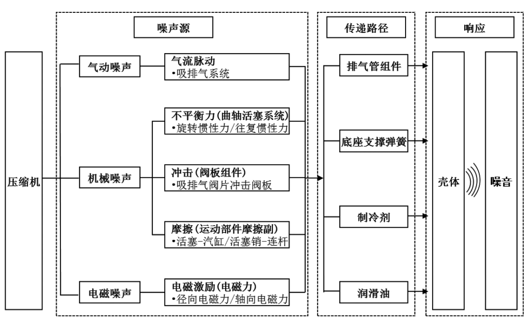 圖1 冰箱壓縮機噪聲產(chǎn)生機理