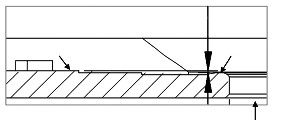 (2)抑制閥板組件沖擊。冰箱壓縮機在吸排氣過程中吸排氣閥片周期性的開啟與閉合,沖擊與拍打閥板,誘發(fā)振動噪聲。因此,一方面優(yōu)化閥板結構設計,將閥板排氣閥芯面高度降低到排氣閥片安裝基準面以下0.03~0.1mm為宜,使排氣閥片與排氣閥芯面的線接觸轉化為排氣閥片與安裝基準面的面接觸,緩沖排氣閥片對閥板的拍打,降低噪聲,如圖2所示;另一方面通過變更閥板閥片材質,如采用玻璃纖維增強塑料等提高閥板閥片的阻尼,降低閥片拍打閥板時產(chǎn)生的噪聲[13]。此外,減小閥片的厚度增大閥片的彈性等措施也有助于改善噪聲。