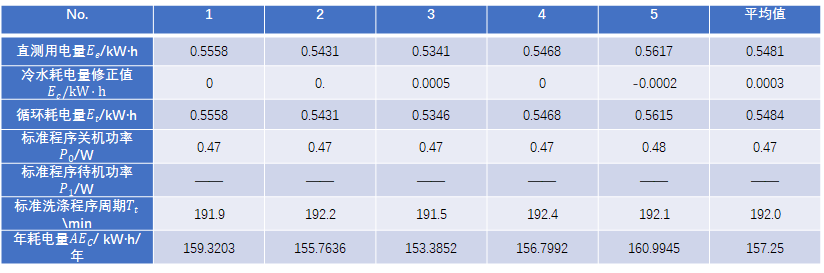 根據(jù)GB 38383-2019中6.2的要求,能效指數(shù)與清潔指數(shù)試驗同時進行,測得每個完整循環(huán)的耗電量。近幾年的洗碗機絕大部分都不需要外部加熱,因此使用冷水供水,如果冷水水溫不是15.0℃,應(yīng)該進行冷水耗電量的修正[2~3]。再通過QB/T 1520-2013中的方法計算出能效指數(shù)。