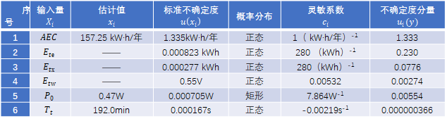 根據(jù)以上簡化公式對年耗電量AEc進行不確定度的評定。