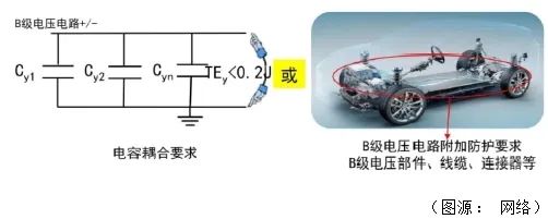 1、B級電壓帶電部件和電平臺之間的總容量在其最大工作電壓時存儲的能量不超過0.2J,對B級電壓電路正極側電容Cy+或負極側電容Cy-最大存儲電能要求為0.2J;