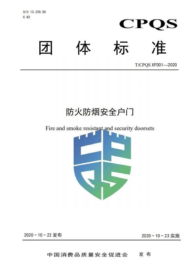 經(jīng)中國(guó)消費(fèi)品質(zhì)量安全促進(jìn)會(huì)(下稱(chēng)“中消會(huì)”)團(tuán)體標(biāo)準(zhǔn)技術(shù)委員會(huì)審查通過(guò),報(bào)經(jīng)中消會(huì)秘書(shū)長(zhǎng)辦公會(huì)議審核通過(guò),由應(yīng)急管理部消防產(chǎn)品合格評(píng)定中心與相關(guān)認(rèn)證檢驗(yàn)機(jī)構(gòu)、產(chǎn)業(yè)聯(lián)盟組織、生產(chǎn)企業(yè)、研究機(jī)構(gòu)等共同編制完成的《防火防煙安全戶門(mén)》(T/CPQS XF001-2020)團(tuán)體標(biāo)準(zhǔn)于2020年10月22日正式發(fā)布,2020年10月23日起實(shí)施。