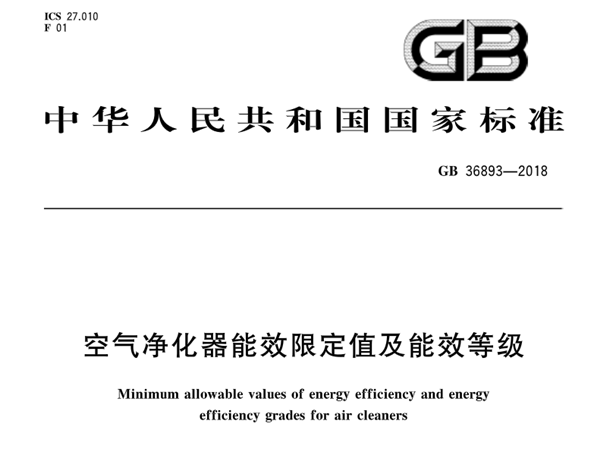 GB 36893-2018《空氣凈化器能效限定值及能效等級》2018年11月19日正式發(fā)布,2019年12月1日正式實施,空氣凈化器能效限定值、能效等級、試驗和計算方法。