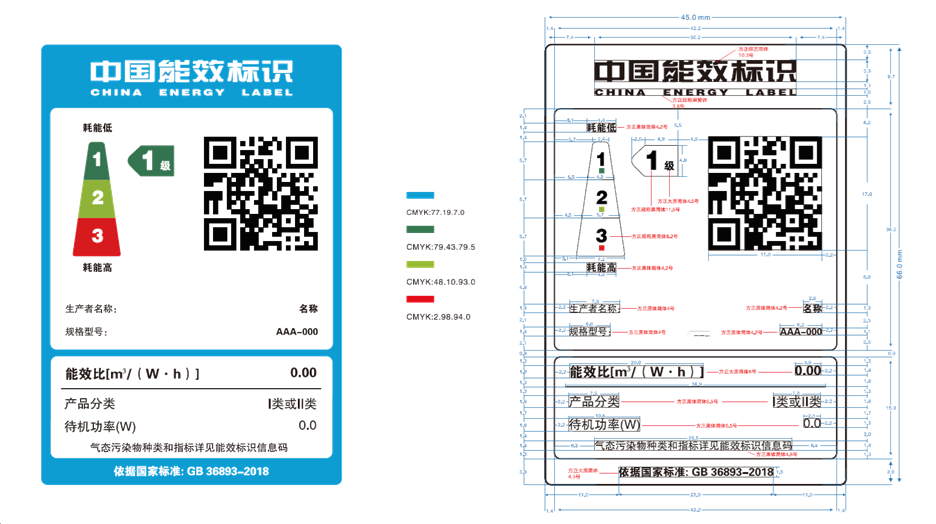 《空氣凈化器能源效率標識實施規(guī)則》于2020年7月1日起實施,標識的樣式和規(guī)格: