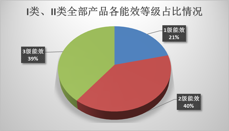 I類、II類全部產(chǎn)品各能效等級占比情況