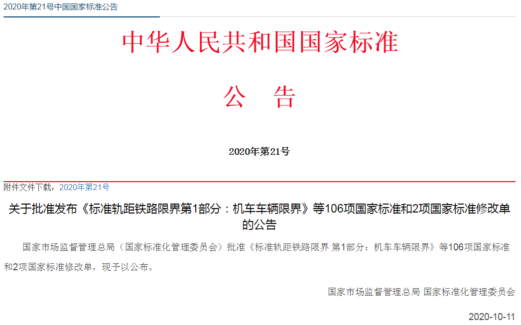 根據(jù)2020年第21號中國國家標(biāo)準(zhǔn)公告,國家市場監(jiān)督管理總局(國家標(biāo)準(zhǔn)化管理委員會)近日批準(zhǔn)發(fā)布了《標(biāo)準(zhǔn)軌距鐵路限界第1部分:機車車輛限界》等106項國家標(biāo)準(zhǔn)和2項國家標(biāo)準(zhǔn)修改單。其中包括《物聯(lián)網(wǎng)智能家居用戶界面描述方法》(GB/T39189-2020)、《物聯(lián)網(wǎng)智能家居設(shè)計內(nèi)容及要求》(GB/T39190-2020)。