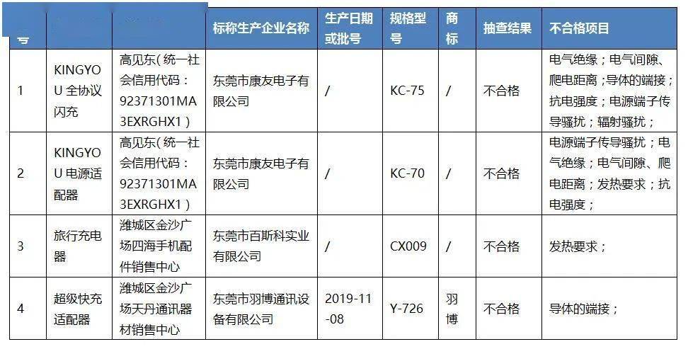 近日,山東省市場監(jiān)督管理局網(wǎng)站公布2020年充電器產(chǎn)品質(zhì)量省級監(jiān)督抽查結(jié)果。本次共抽查了全省6家企業(yè)10批次充電器產(chǎn)品,其中,流通領(lǐng)域6家企業(yè)10批次。抽查發(fā)現(xiàn)3家企業(yè)的4批次產(chǎn)品不符合相關(guān)標(biāo)準(zhǔn)的要求,不合格項(xiàng)目為電氣絕緣、電氣間隙、爬電距離、導(dǎo)體的端接、發(fā)熱要求、抗電強(qiáng)度、電源端子傳導(dǎo)騷擾、輻射騷擾項(xiàng)目。