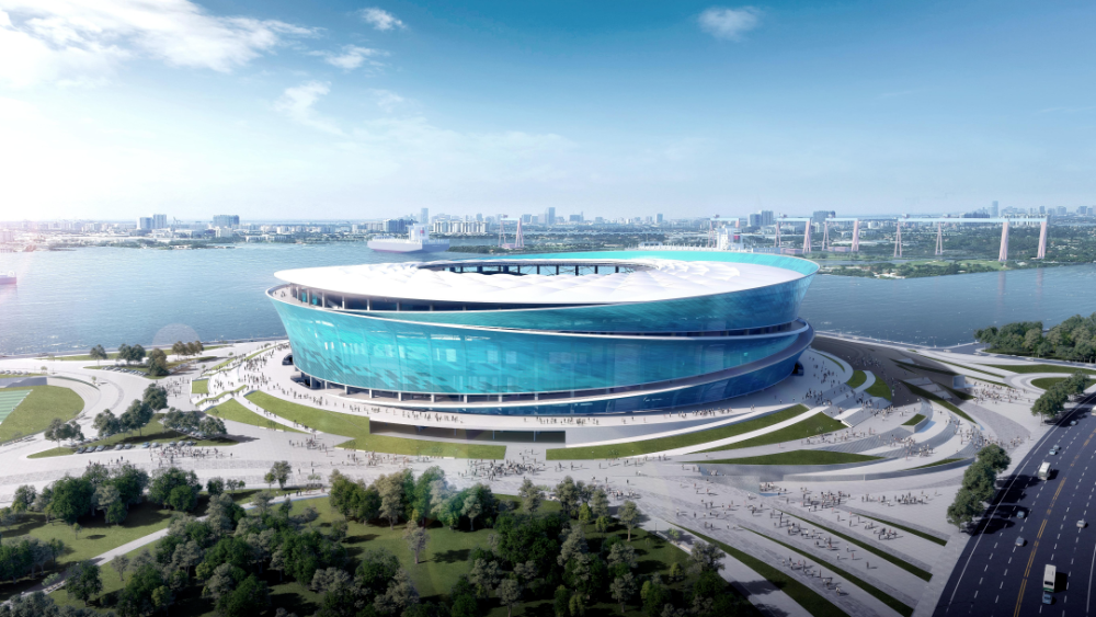 足球場設(shè)計理念為“炫彩疊浪”。建筑立面定妝色“海洋藍”,頂棚呈白色,“藍海白云”與飾面象征波光粼粼的水之形態(tài),將大連的海洋文化、足球精神融于一體。