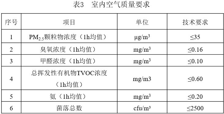 對于使用空氣凈化器的室內(nèi)場所的室內(nèi)空氣質(zhì)量應(yīng)符合表3的要求。