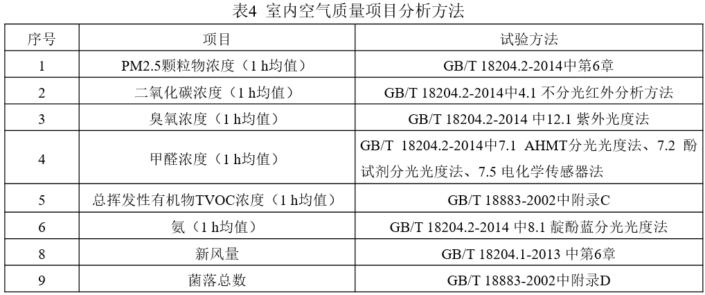 對于使用凈化器的室內(nèi)場所的室內(nèi)空氣質(zhì)量應(yīng)按照表4對應(yīng)的試驗方法進行。