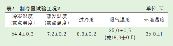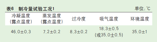 (3)為了和GB 35971-2018協(xié)調(diào)一致,標(biāo)準(zhǔn)正文中制冷量試驗(yàn)工況應(yīng)加以修訂,建議沿用原標(biāo)準(zhǔn)附錄A中B類壓縮機(jī)制冷量試驗(yàn)工況2(此工況和GB 35971試驗(yàn)工況一致)作為新標(biāo)準(zhǔn)試驗(yàn)工況1,同時(shí)考慮國際上通用的ARI標(biāo)準(zhǔn)的繼承性,保留原標(biāo)準(zhǔn)試驗(yàn)工況2。分別見表6、表7。