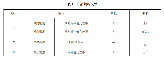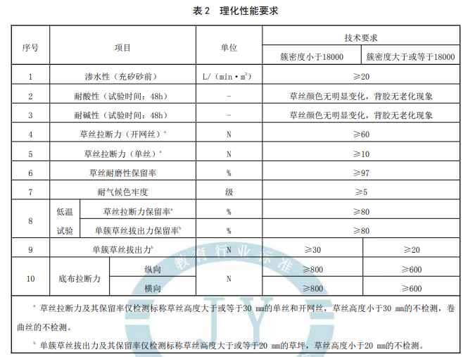 人造草面層成品物理機械性能: